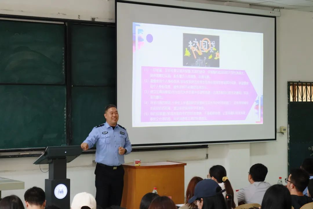 之后,杜所长又针对电信诈骗这一残害老员工的“毒瘤”作了详细的讲解。分析了“糖衣”背后的“炮弹”,最大限度地保障了员工的财产安全。各位民警同志也结合近期的实际案例介绍电信诈骗的最新手段,同学们表示对电信诈骗有了更透彻的了解。相信经过此次的讲座,同学们都不会再轻信电信诈骗的套路。