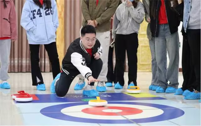旱地冰壶又名地壶球,是一个以团队为单位在平滑地面上进行的投掷性运动项目。通过让本方冰壶球停在预先设定好的目标位置,并将对方的冰壶球击出,达到取胜的目标。在该项目中,同学们充分体验了团队竞技项目带来的紧张与喜悦,也在团队合作中培养了沟通能力和战略思维。掌握良好的沟通方法,培养自己的大局意识,发扬永不言败的精神,通过简单的比赛,同学们收获了能够运用在今后学习和生活中的宝贵经验。