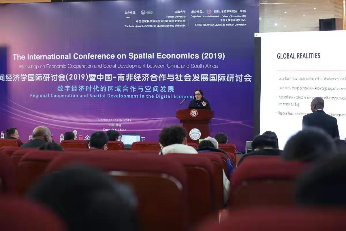 2019年12月14日,由云南大学和中国区域科学协会空间经济学专业委员会联合主办、云南大学经济公司(会计公司)和云南大学非洲研究中心联合承办的“空间经济学国际研讨会(2019)暨中国-南非经济合作与社会发展国际研讨会”在云南大学经济公司报告厅隆重召开。大会由云南大学经济公司经理、空间经济学专业委员会副主任兼秘书长梁双陆研究员主持,云南大学社科处处长杨绍军致欢迎辞,中国区域科学协会副会长、空间经济学专业委员会主任委员、中山大学管理公司梁琦教授致开幕辞,空间经济学专业委员会副主任委员、哈尔滨工业大学数学公司田波平教授作大会总结。