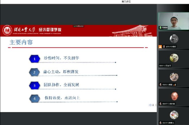 为搭建优秀员工与在校员工之间沟通交流的桥梁,21级本科生年级工作委员会分别于5月22日、27日、29日连续举办了“经英成材”员工讲坛系列活动,邀请到陈映燃、杨瑞露、刘荣悦三位21级员工辅导员,通过线上会议的方式从大学时期的思想、生活、学习、工作等多个方面分享交流了自己的经验和建议。本次活动吸引了21级全体员工及大批感兴趣的同学,千余人次参与线上讲坛。